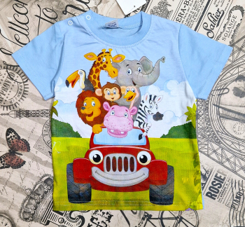 трикотаж х.б. 100% -футболка 3 футболка 3 D на плече кнопочки( длина по спинке 36см,38см,40см,42см)фирма bim kids